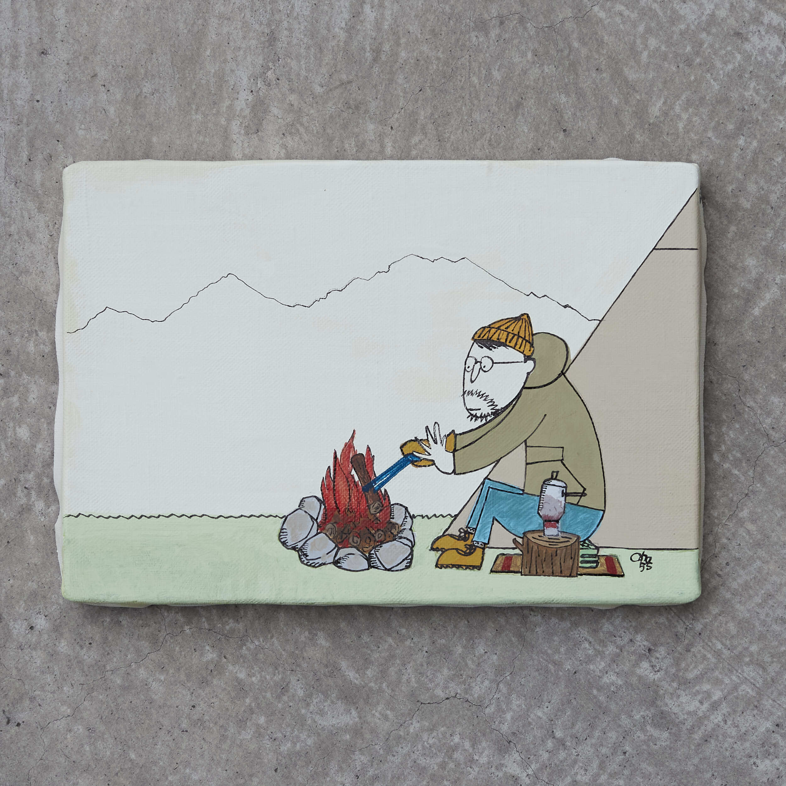キャンプをテーマに描き下ろした1点ものの原画です。