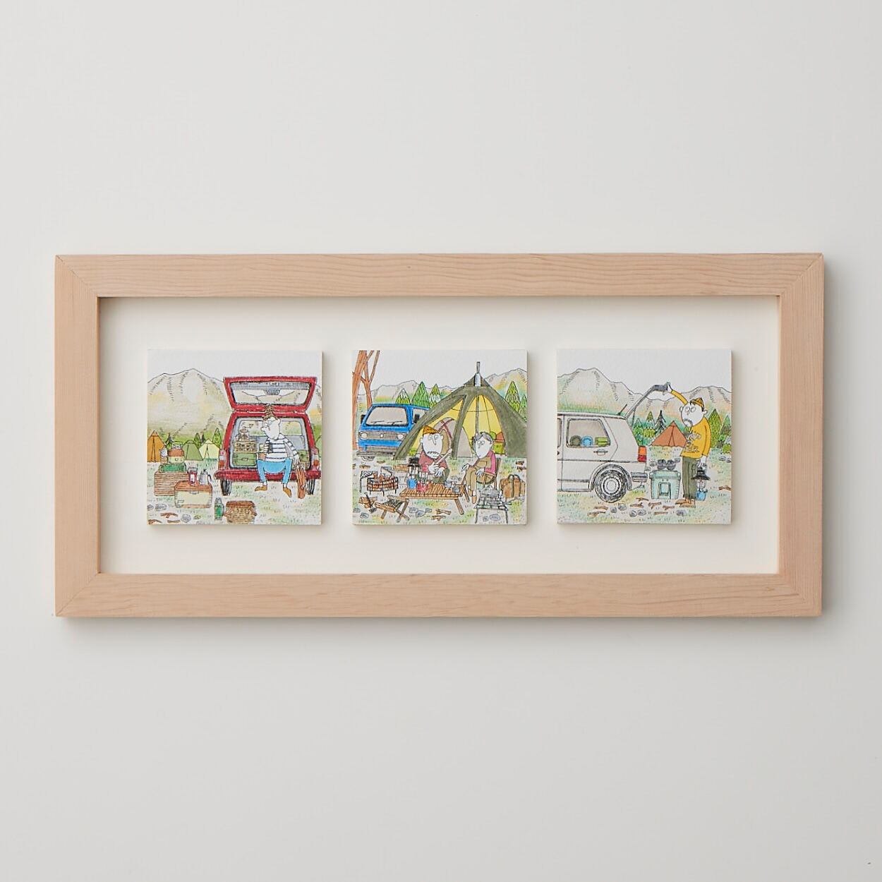 イラスト部分のサイズがそれぞれ10cm×10cm、フレームのサイズが横44cm×縦21cmになります。